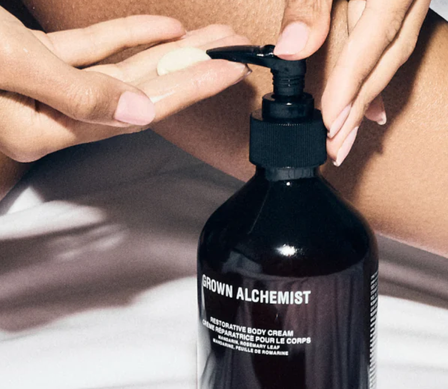 Follow with the Restorative Body Cream, a rich yet fast-absorbing moisturizer powered by Aloe, Shea Butter, and Camellia Oil to strengthen and protect the barrier.